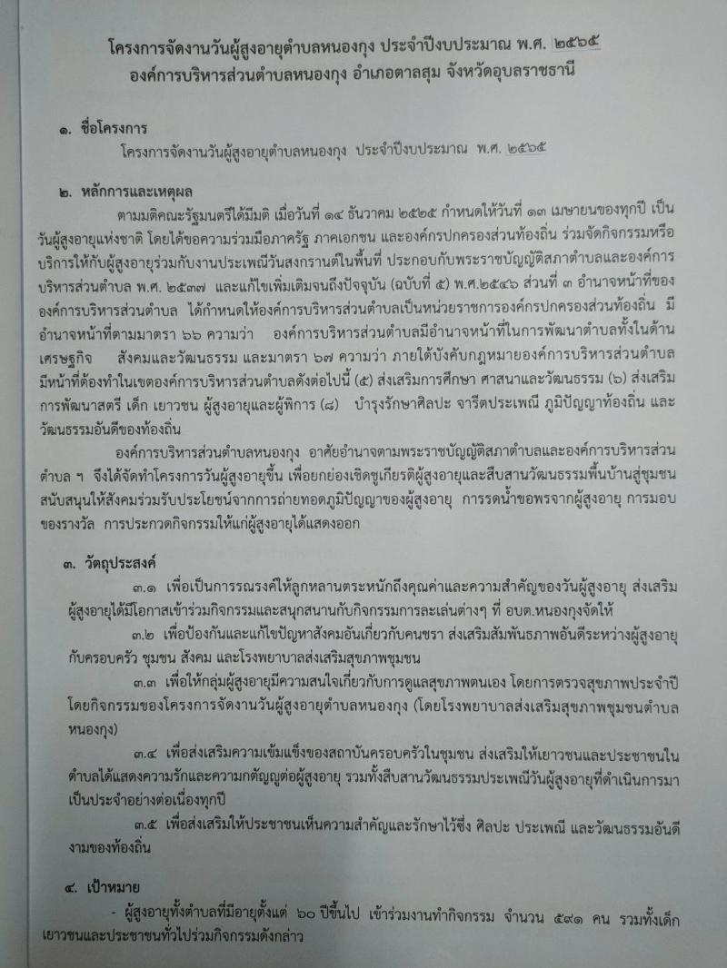 description โครงการจัดงานวันผู้สูงอายุตำบลหนองกุง ประจำปีงบประมาณ พ.ศ.2565 องค์การบริหารส่วนตำบลหนองกุง อำเภอตาลสุม จังหวัดอุบลราชธานี person admin
