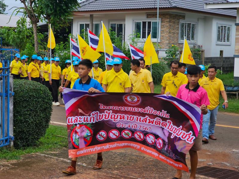 description วันที่ 26 มิถุนายน 2567 นายวิทยา แก้วมุก นายกองค์การบริหารส่วนตำบลหนองกุง เป็นประธานในพิธีเปิดโครงการรณรงค์ป้องกันและแก้ไขปัญหายาเสพติดในชุมชน ประจำปี 2567 ณ สนามกีฬาโรงเรียนบ้านหนองกุง และร่วมกิจกรรมเนื่องในวันต่อต้านยาเสพติดโลก ประจำปี 2567 โดยมีคณะผู้บริหาร สมาชิกสภา ข้าราชการ พนักงานจ้าง ครู นักเรียนในพื้นที่ตำบลหนองกุง ร่วมเดินรณรงค์ประชาสัมพันธ์เพื่อสร้างการรับรู้ ร่วมปลุกกระแสแสดงพลังต่อต้านยาเสพติด ด้วยการสวมเสื้อสีเหลือง เพื่อเฉลิมพระเกียรติพระบาทสมเด็จพระเจ้าอยู่หัว เนื่องในโอกาสมหามงคลเฉลิมพระชนมพรรษา 6 รอบ 28 กรกฎาคม 2567 ภายใต้กรอบแนวคิดและคำขวัญ “รวมพลังไทย สร้างครอบครัว ชุมชนอบอุ่น พ้นภัยยาเสพติด เฉลิมพระเกียรติ 72 พรรษา มหาราชา” พร้อมสร้างการรับรู้ให้แก่ประชาชนในพื้นที่ ผ่านช่องทางต่าง ๆ เช่น ความรู้เกี่ยวกับโทษและพิษภัยของยาเสพติด/สารเสพติด วิธีหลีกหนียาเสพติด ผลร้ายต่อสุขภาพของการใช้กัญชา อันตรายของบุหรี่ไฟฟ้า เป็นต้น person admin